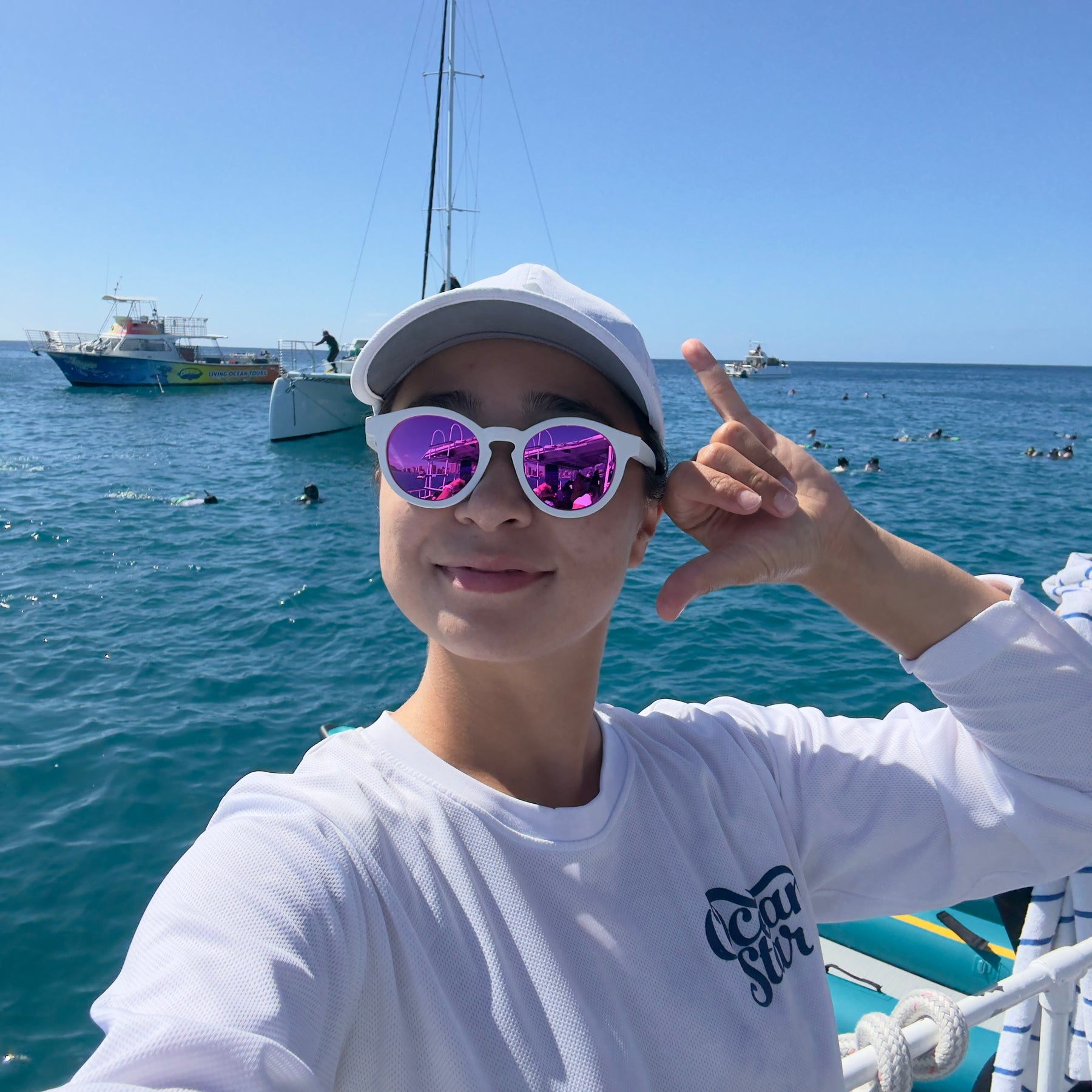 "They're so perfect for my ocean lifestyle because they're polarized to protect my eyes and they float in the ocean."